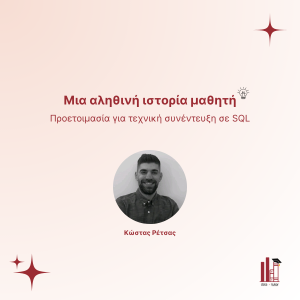 Τα Χριστούγεννα του 2024 βρεθήκαμε με τον μαθητή της Data Tutor Κώστα Ρέτσα και κάναμε μια ανασκόπηση της πορείας του και της δικής μας εκπαιδευτικής συνεργασίας. Ήταν μια πολύ χρήσιμη συζήτηση για αξιολόγηση της πορείας του, αλλά και επεξήγηση πώς